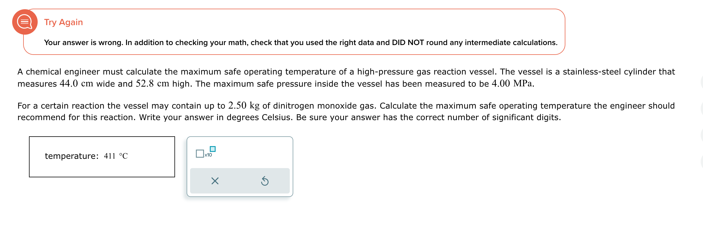 A Chemical Engineer Must Calculate The Maximum Safe Operating Temperature