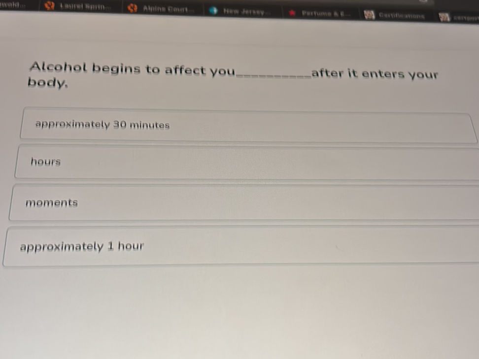 Alcohol begins to affect you ______ after it | StudyX