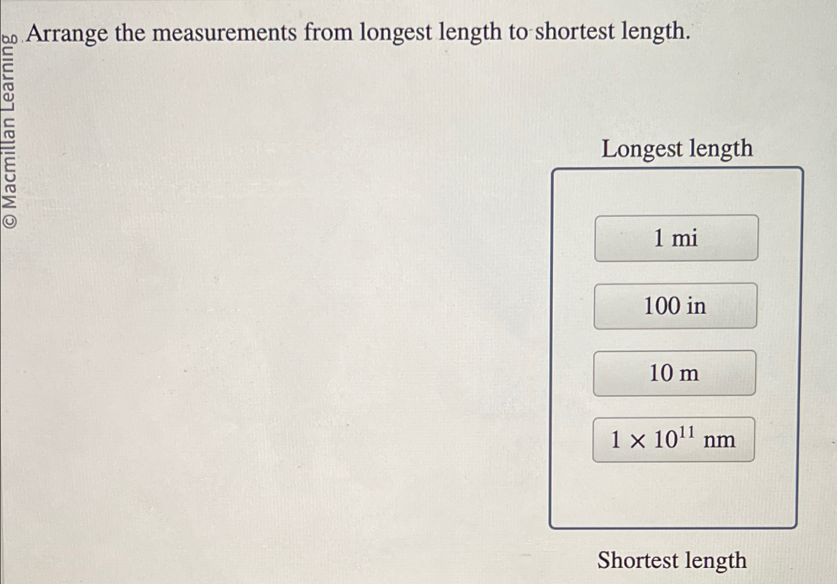 Solved Arrange the measurements from longest length to | Chegg.com