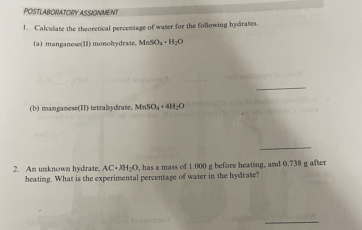 Calculate The Theoretical Percentage Of Water For The Following Hydrates
