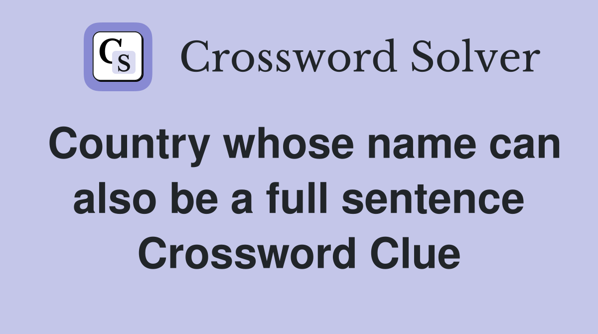 Country whose name can also be a full sentence - Crossword Clue Answers