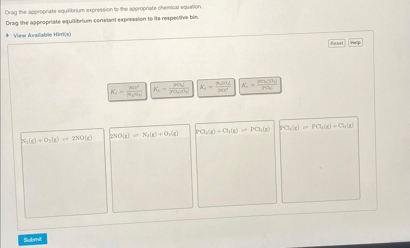 Drag The Appropriate Equilibrium Expression To The Appropriate Chemical Equation