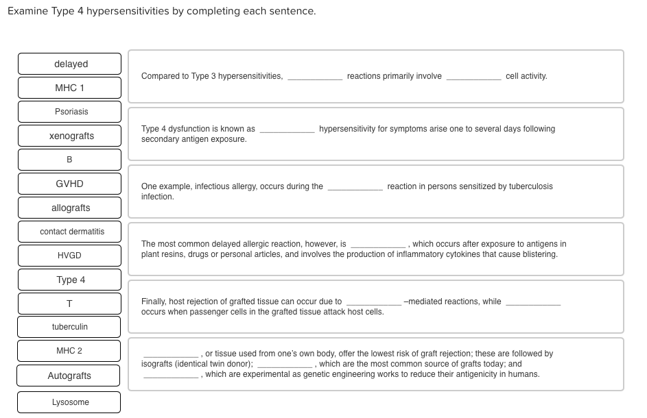 Examine Type 4 Hypersensitivities By Completing Each Sentence