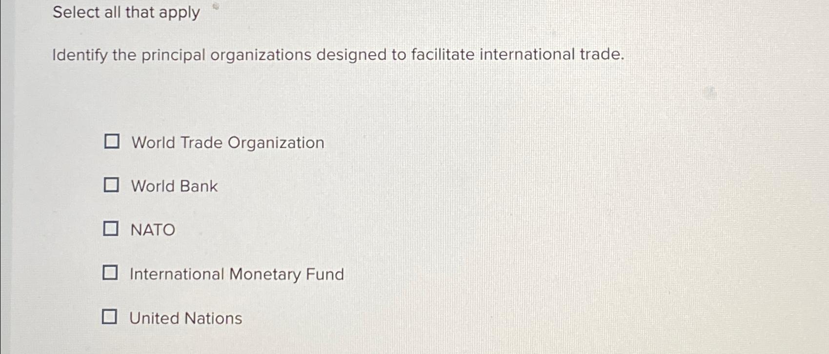 Identify The Principal Organizations Designed To Facilitate International Trade.