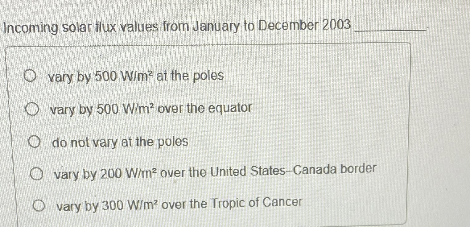 Incoming solar flux values from January to December | Chegg.com