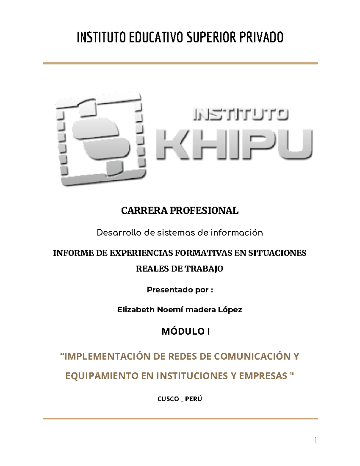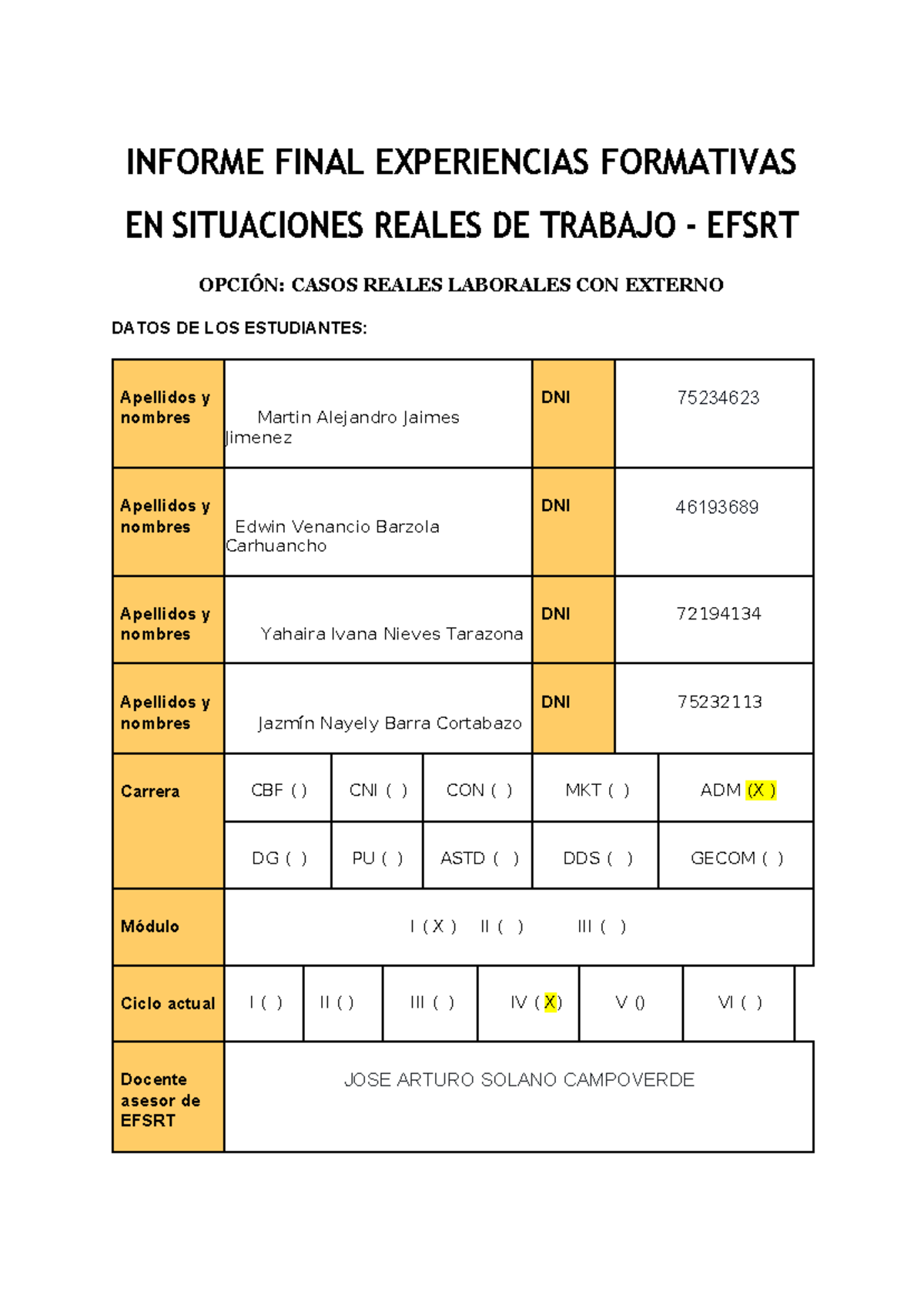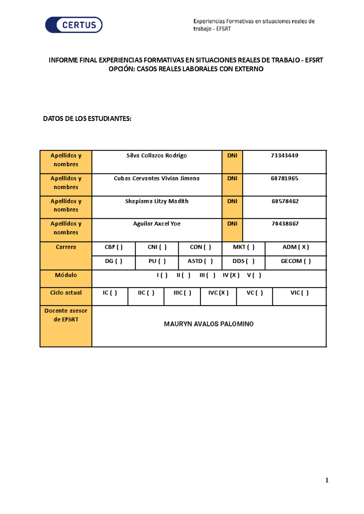 Informe Final Experiencias Formativas EN Situaciones Reales DE Trabajo