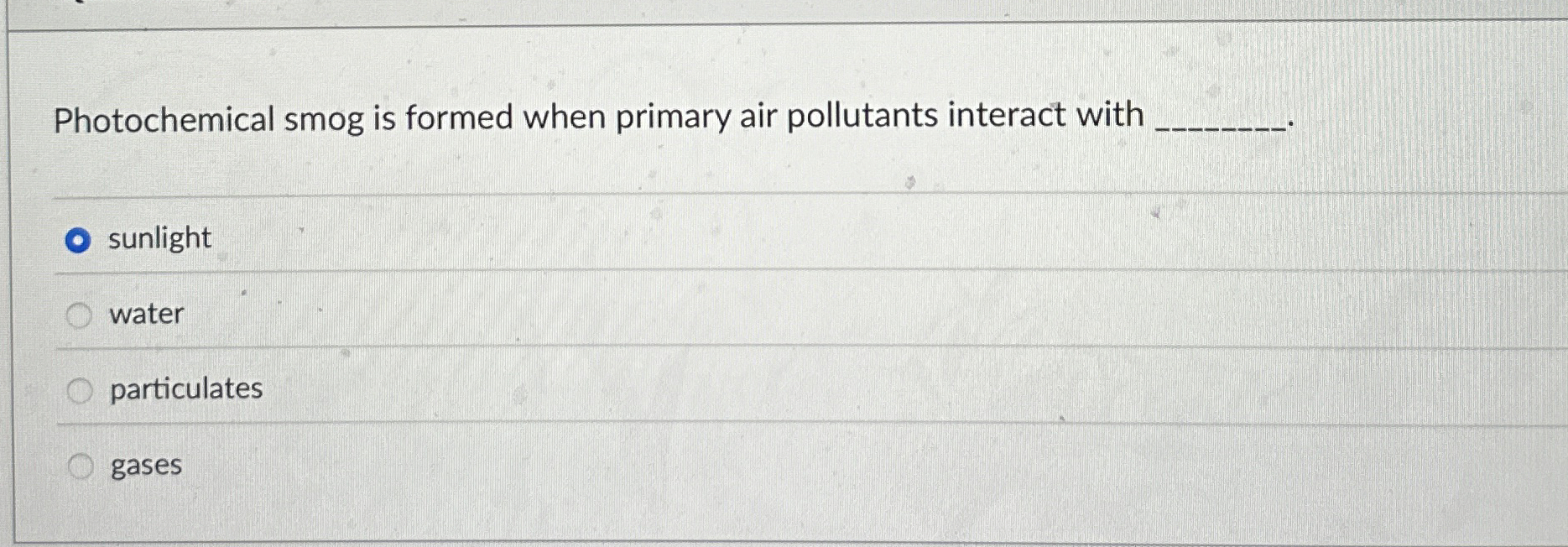 Solved Photochemical smog is formed when primary air | Chegg.com