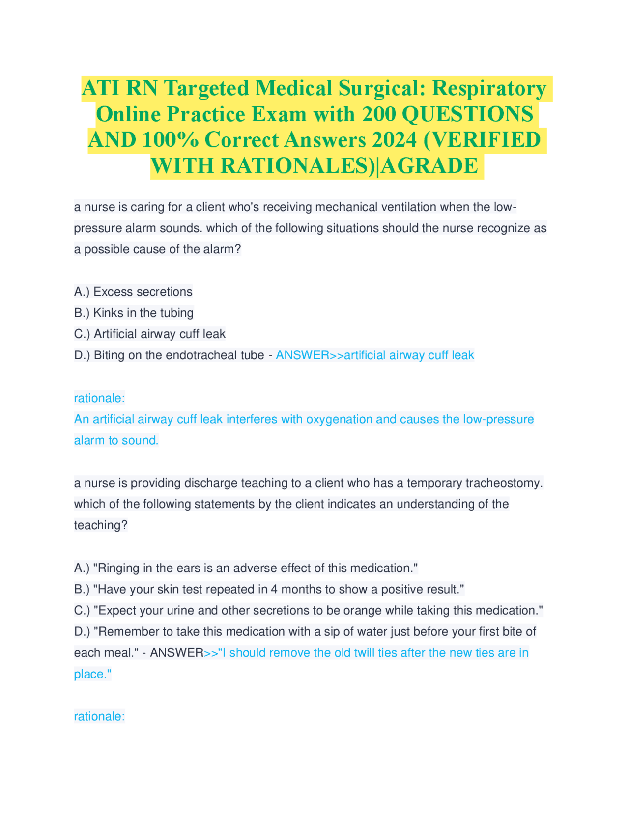 Rn Targeted Medical Surgical Respiratory Online Practice 2023