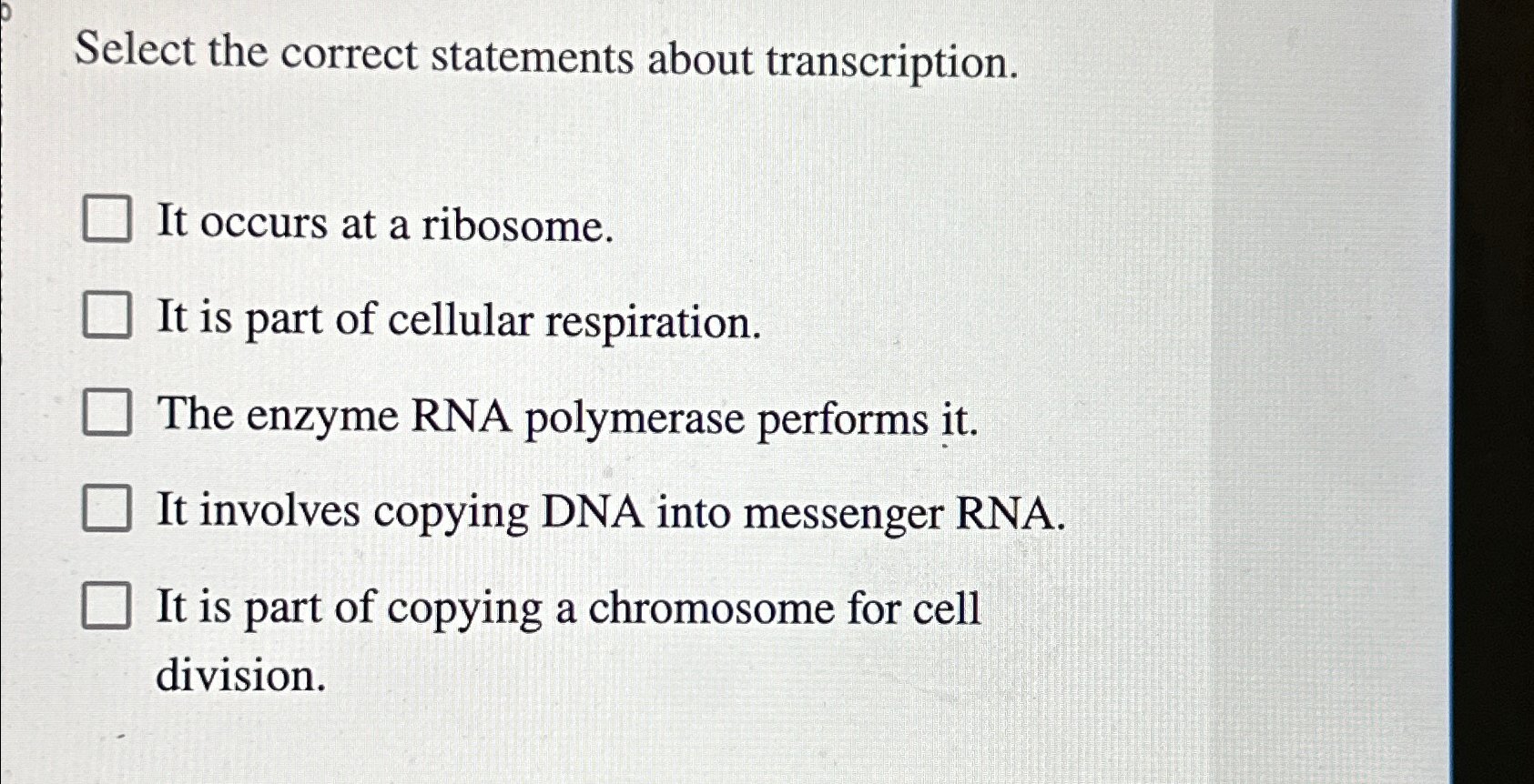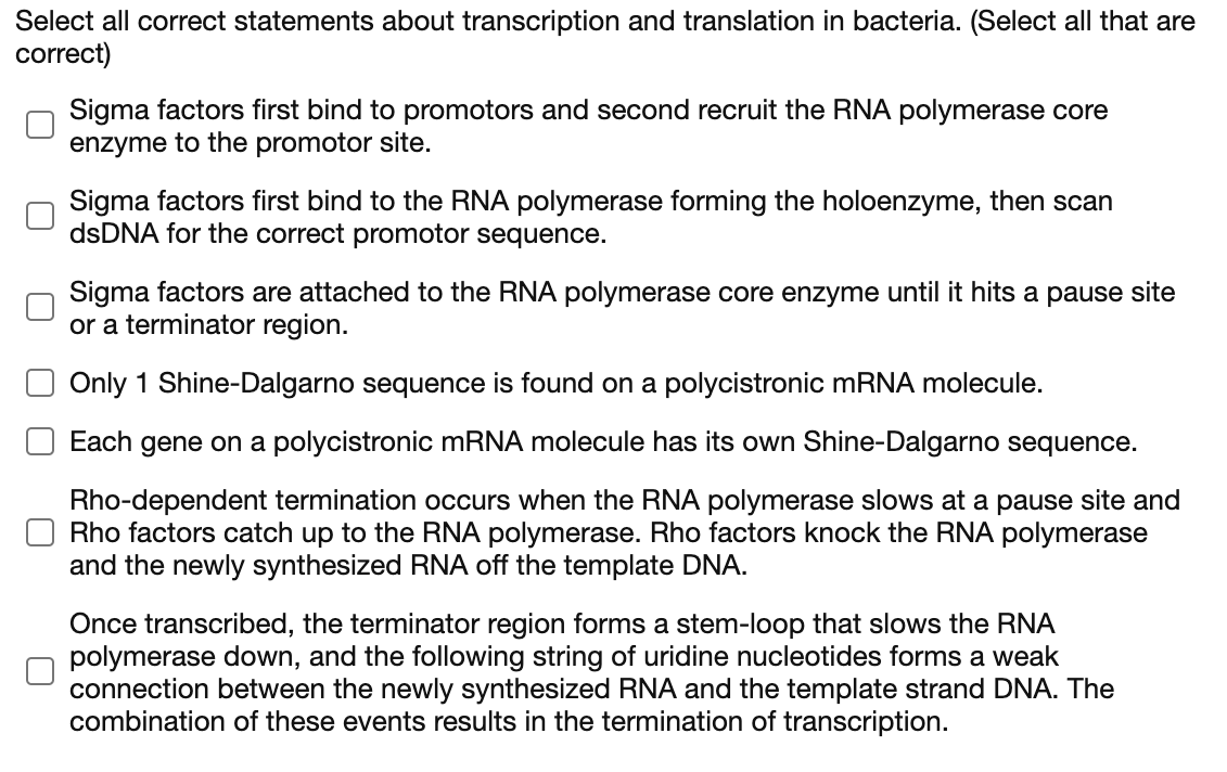 Solved Select all correct statements about transcription and | Chegg.com