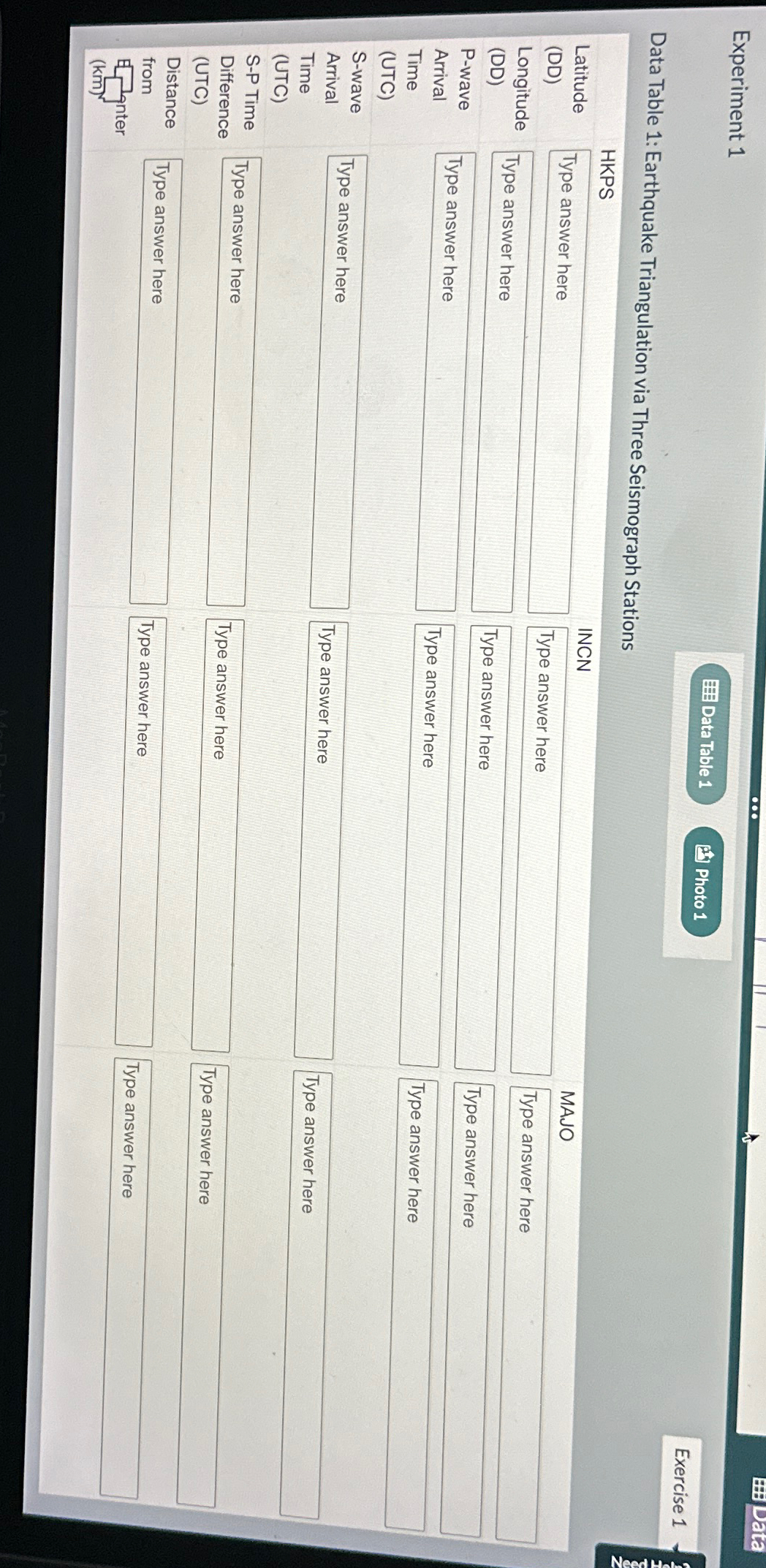 Solved Experiment 1Exercise 1Data Table 1: Earthquake | Chegg.com