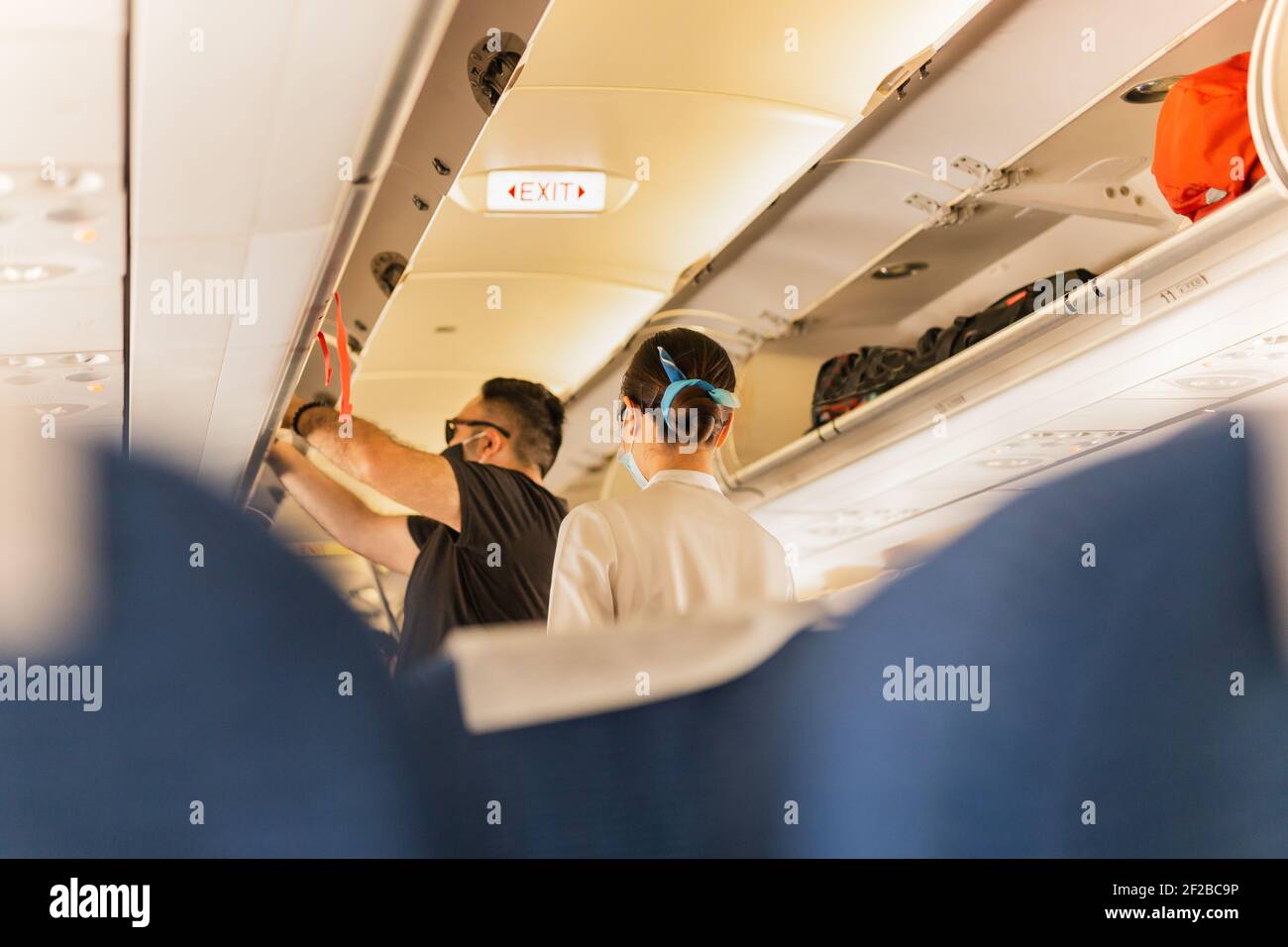 The Flight Attendant Helped Put Away The Last Passenger Luggage