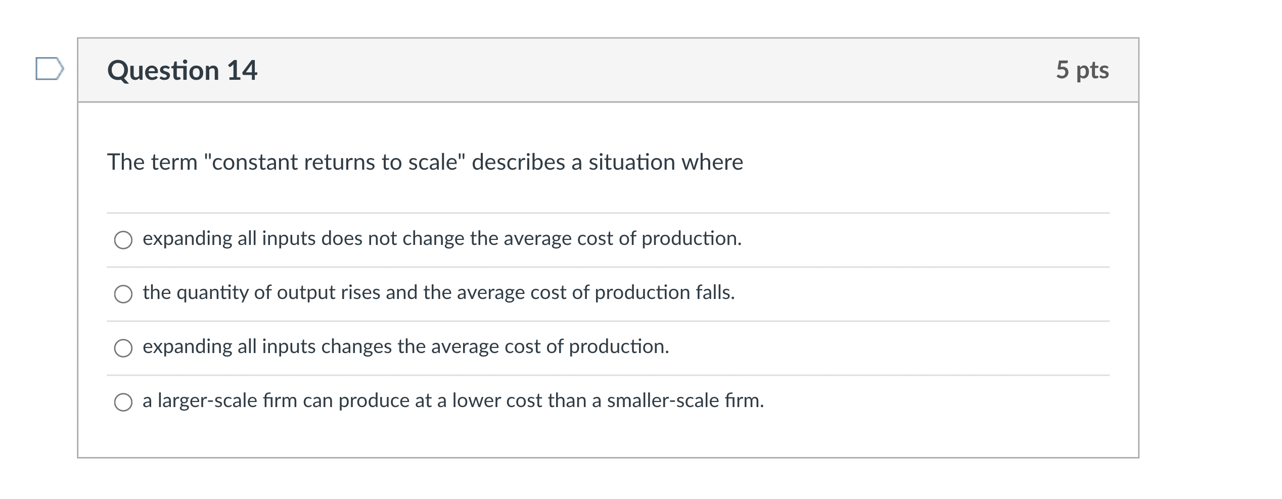 Solved Question 14 5 pts The term "constant returns to | Chegg.com