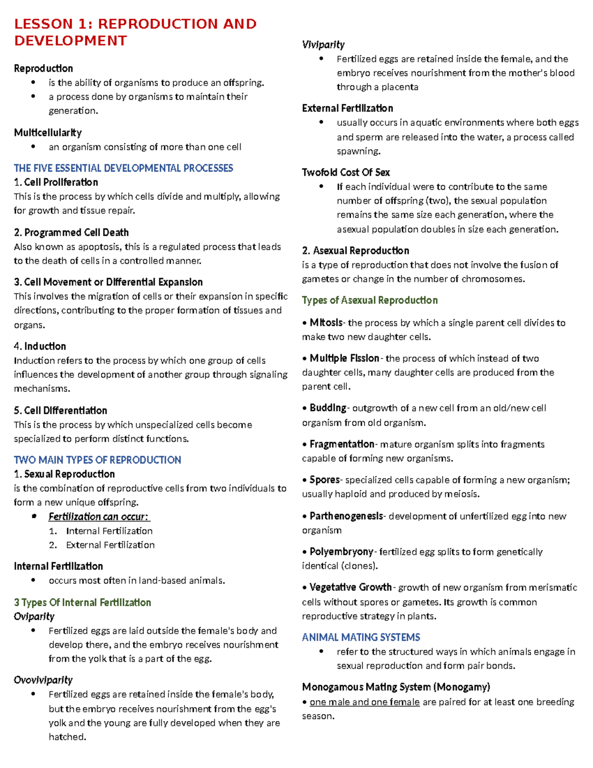 Topic 4 Reproduction And Development Review Questions Answer Key