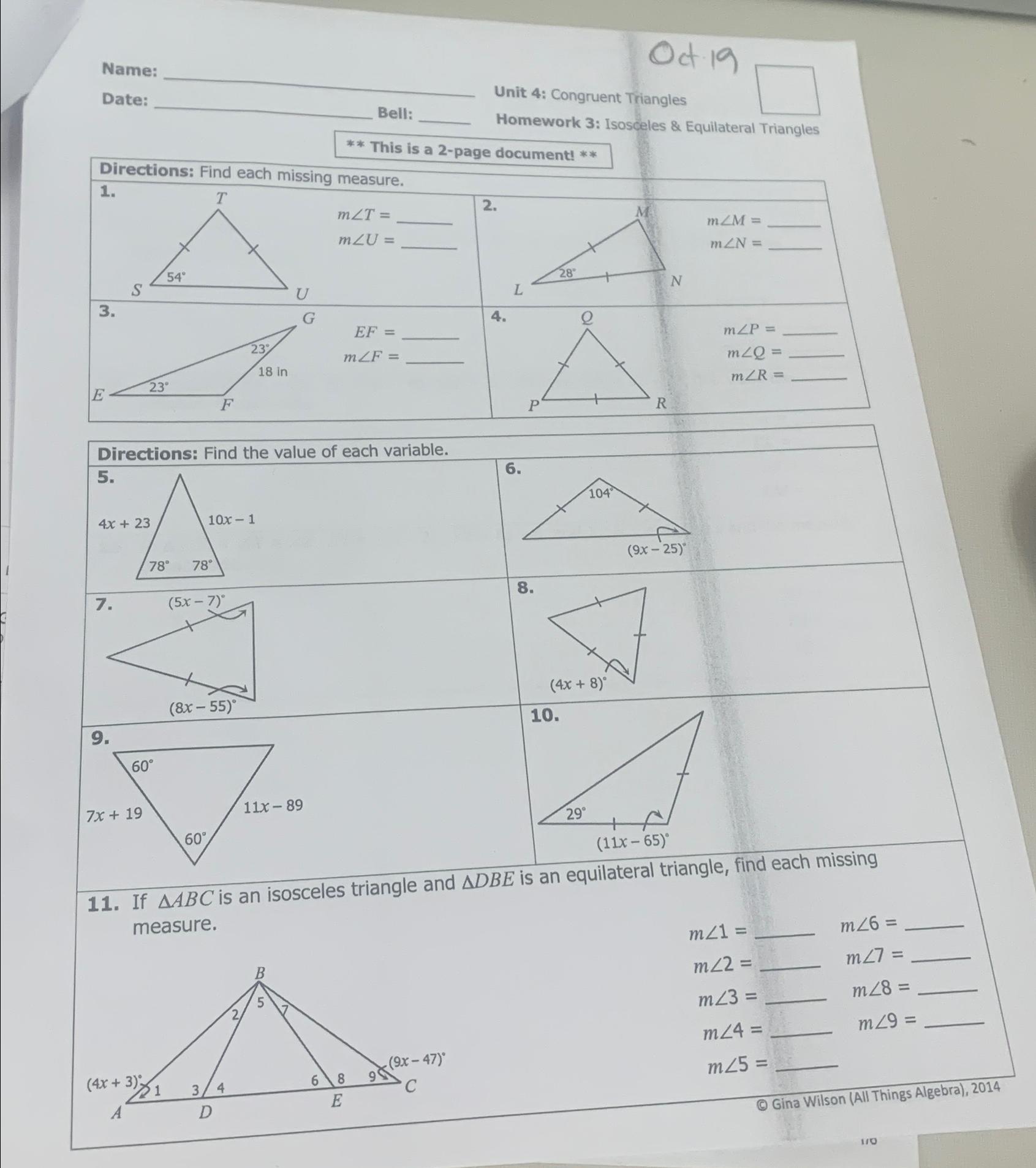 Solved Name:Oct. 19Date:Unit 4: Congruent | Chegg.com
