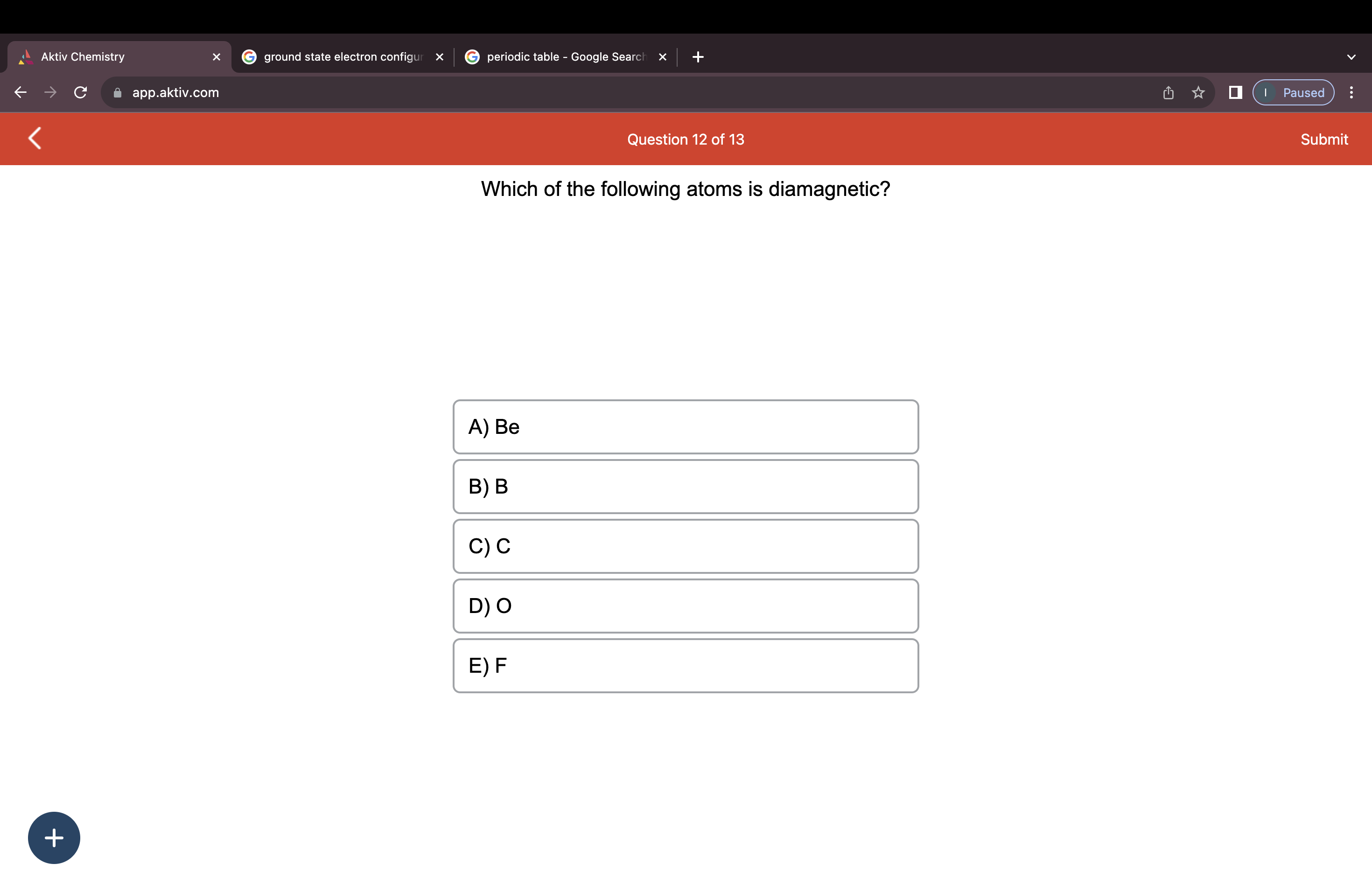 Which Of The Following Atoms Is Diamagnetic In Its Ground-state