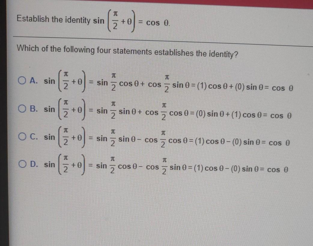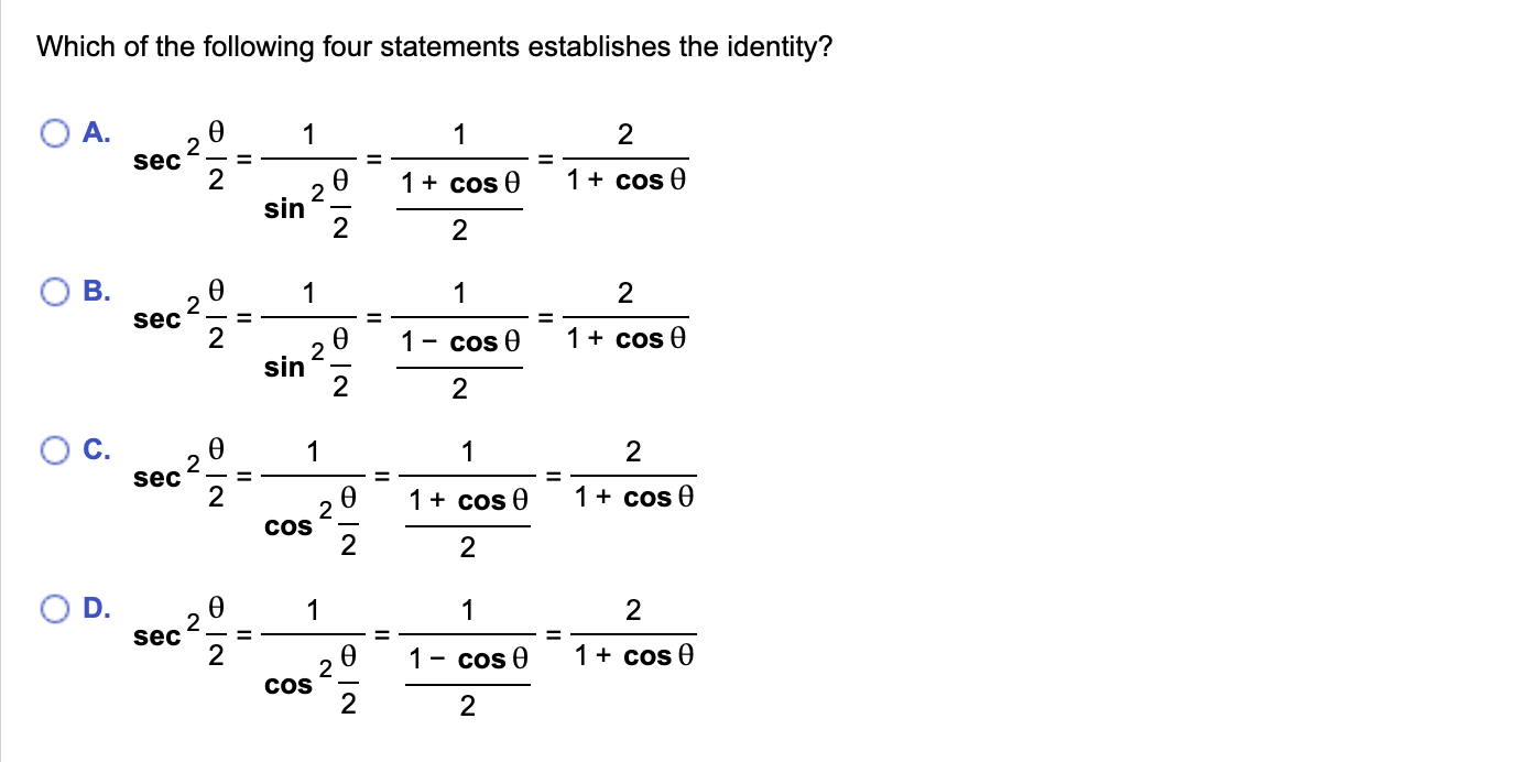 Which Of The Following Four Statements Establishes The Identity