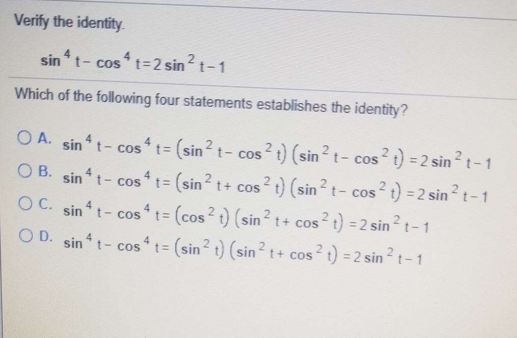 Solved verify the identity which of the following four | Chegg.com