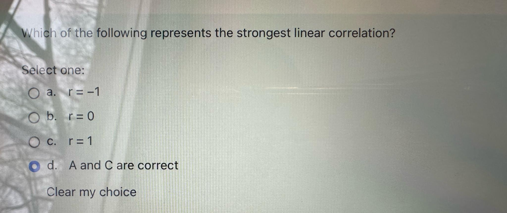 Which of the following correlation coefficients represents the